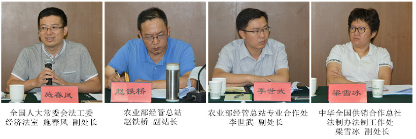 全国人大常委会法工委经济法室施春风副处长和喻晓川同志,农业部经管总站赵铁桥副站长和专业合作处李世武副处长,中华全国供销合作总社法制办法制工作处梁雪冰副处长参加了研讨会。研讨会开始后,全国人大常委会法工委经济法室施春风副处长介绍了《农民专业合作社法(修订草案)》的修法背景和主要考虑。