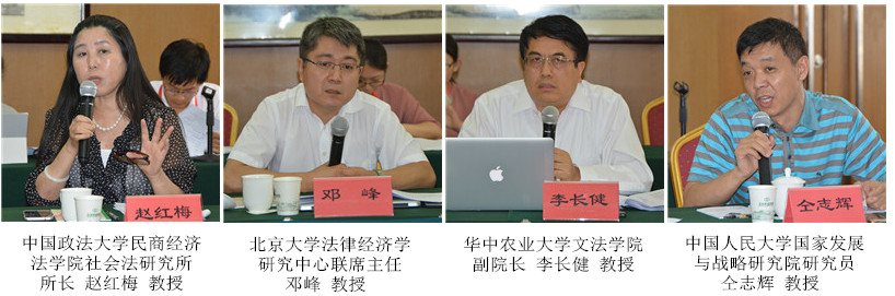 中国法学会民法学研究会常务理事、中国政法大学法律硕士学院院长费安玲教授,中国法学会证券法学研究会副会长、清华大学法学院金融与法律研究中心主任施天涛教授,中国法学会保险法学研究会副会长、北京航空航天大学法学院任自力教授,中国法学会行政法学研究会常务理事、中央民族大学法学院熊文钊教授,中国政法大学民商经济法学院社会法研究所所长赵红梅教授,北京大学法律经济学研究中心联席主任邓峰教授,华中农业大学文法学院副院长李长健教授,中国人民大学国家发展与战略研究院研究员、社会转型与治理研究中心副主任仝志辉教授,中国社会科学院农村发展研究所苑鹏研究员,浙江省法学会三农法治研究会副会长、浙江农林大学马永双教授,中国社会科学院法学研究所刘海波副研究员,中国政法大学民商经济法学院商法研究所副所长朱晓娟副教授,嘉兴市绿农植保专业合作社理事长、嘉兴市绿农现代化农业开发有限公司总经理王高峰等专家学者参加会议。此外,中国法学会民法学研究会副会长、西南政法大学民商法学院谭启平教授,山西省经济法学研究会会长、山西财经大学法学院马跃进教授提交了书面修改意见。